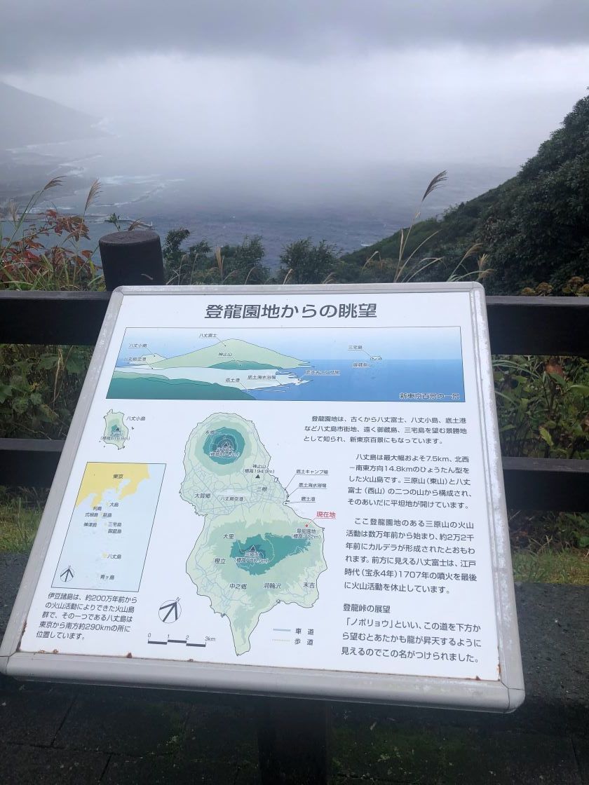 眺めの良いスポット、登龍峠の頂上より。あいにくの雨でしたので煙っています。